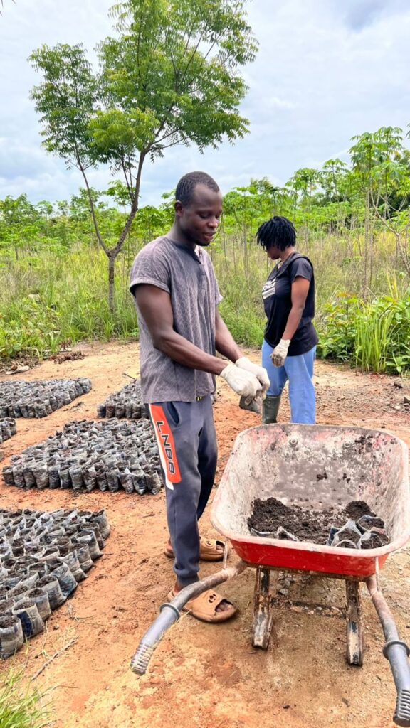Avec ingéniosité, Sophie et ses collègues Mewi, Natacha accompagné par Jules M’BOUKE récupèrent des sachets plastiques auprès de collecteurs de déchets de la capitale. Ils les recyclent pour l’empotage, donnant ainsi une seconde vie à ces matériaux tout en contribuant à la production de milliers de plants. Un geste simple, mais profondément engagé, qui lie écologie, responsabilité et action.